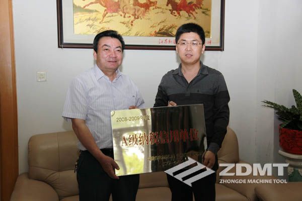中德机床荣获“2008-2009年度安徽省A级征税诺言单元”声誉称呼