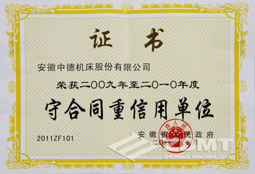 我公司被安徽省当局授与“守条约重信誉进步前辈单元”称呼