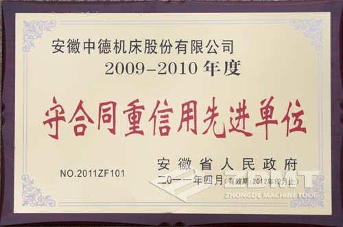 我公司被安徽省当局授与“守条约重信誉进步前辈单元”称呼